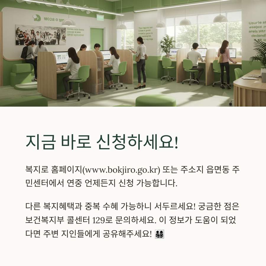 | 신청방법 | 읍면동 주민센터, 복지로 온라인 |