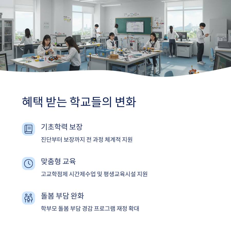 가장 주목할 점은 이번 지원이 단순한 시설 개선을 넘어 학생 중심의 교육환경 혁신을 목표로 한다는 거예요. 미래 교육을 위한 스마트 교실, 창의 공간 등이 많이 만들어질 예정이에요.