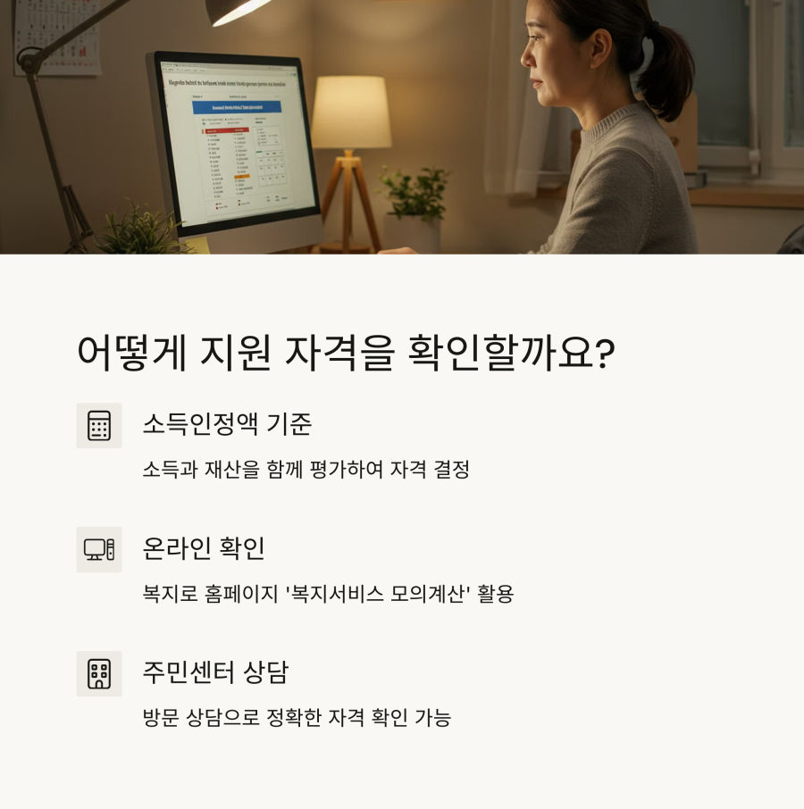 자격 확인은 복지로 홈페이지나 주민센터에서 쉽게 할 수 있어요. 본인의 상황에 맞는 서비스가 있는지 한 번 확인해보세요.