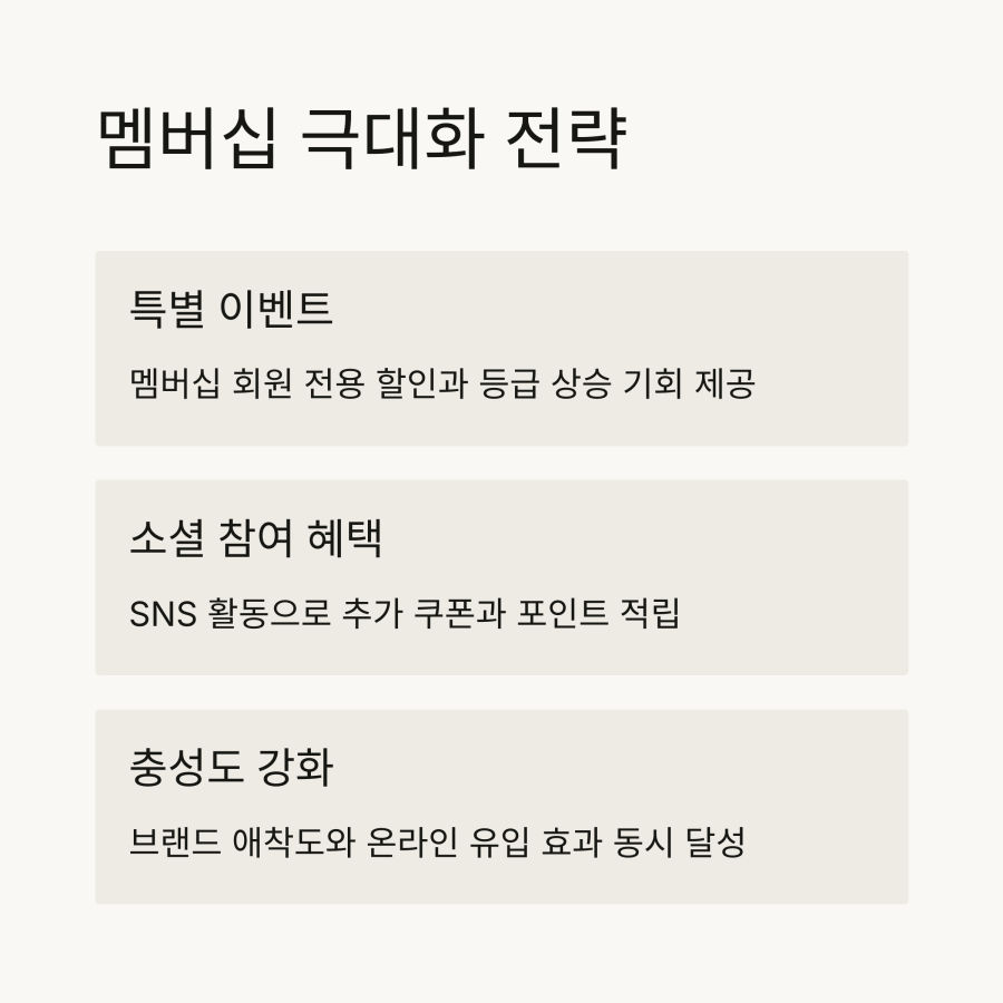 | 멤버십 혜택 | 계절 맞춤 할인 |