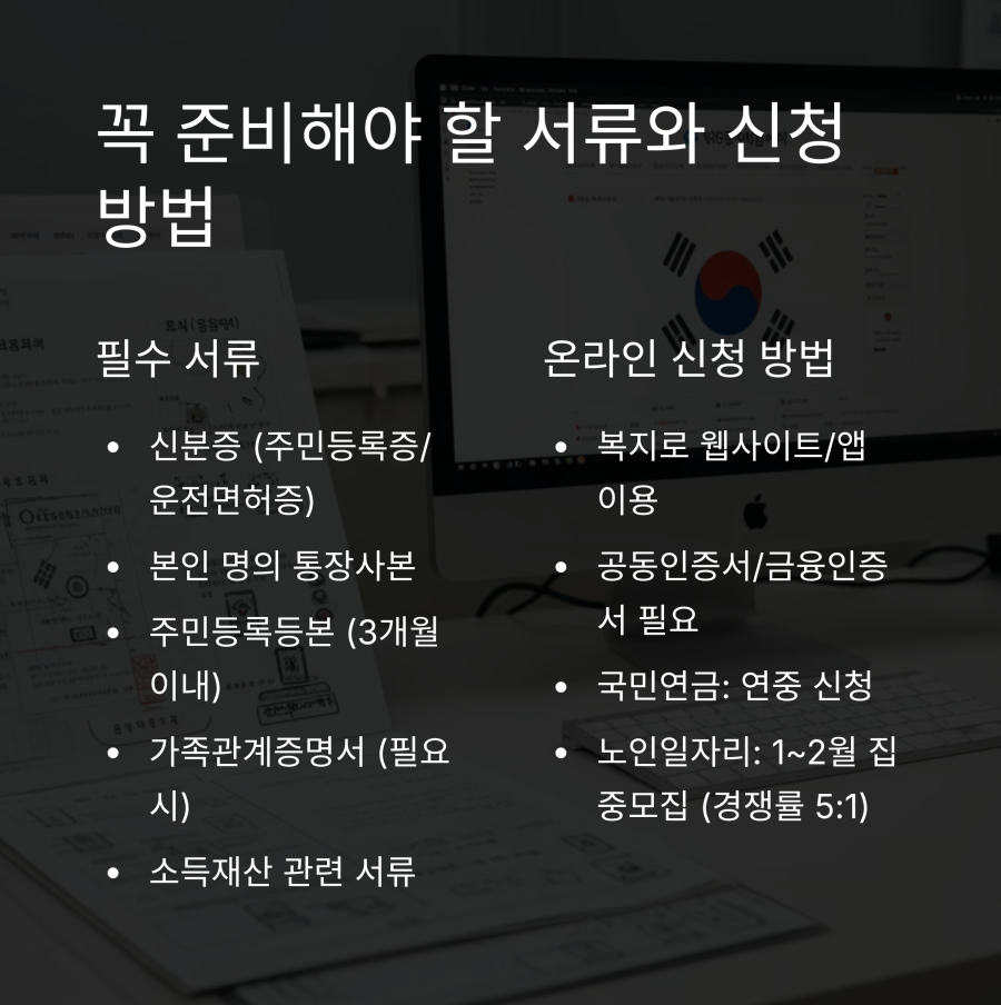 | 기초연금 | 주민센터, 복지로 | 신분증, 통장사본 | 약 30일 |