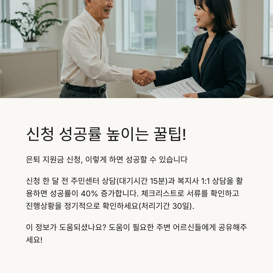 지원금 신청 성공률을 높이기 위해서는 미리 전화상담을 받아보는 것이 좋아요. 상담을 통해 필요한 서류와 자격 조건을 정확히 확인할 수 있습니다.