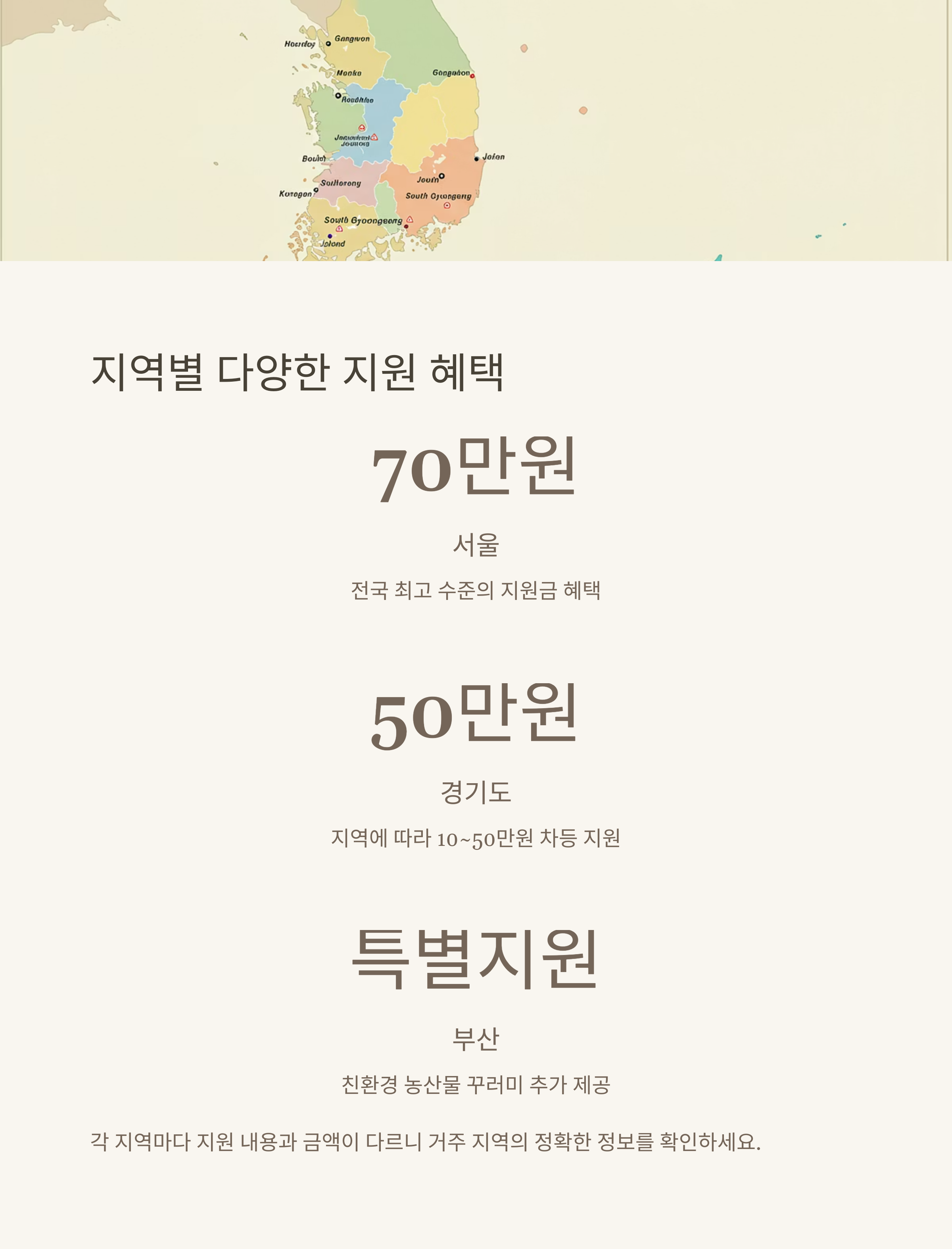 지역마다 지원 금액과 조건이 다르다는 점 아시나요? 🏙️ 몇 가지 대표적인 지역의 사례를 살펴볼게요.