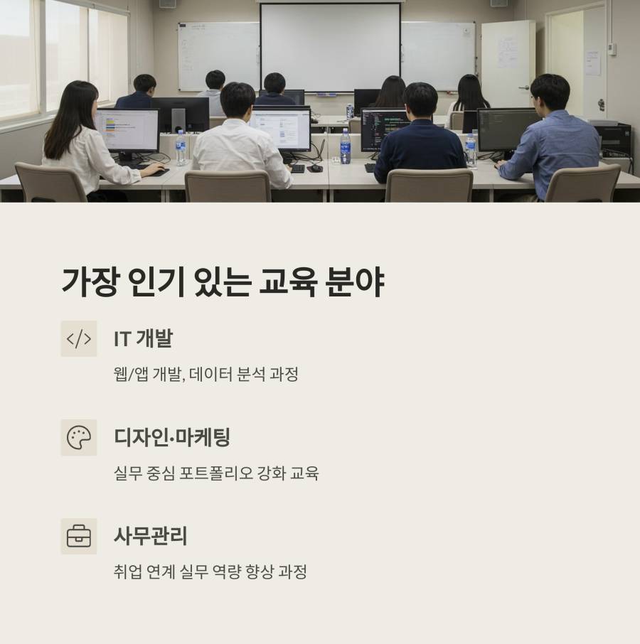 요즘 가장 인기 있는 분야는 단연 IT 관련 직종이에요. 웹 개발, 앱 개발, 데이터 분석, AI 등의 과정이 매우 인기가 높답니다.