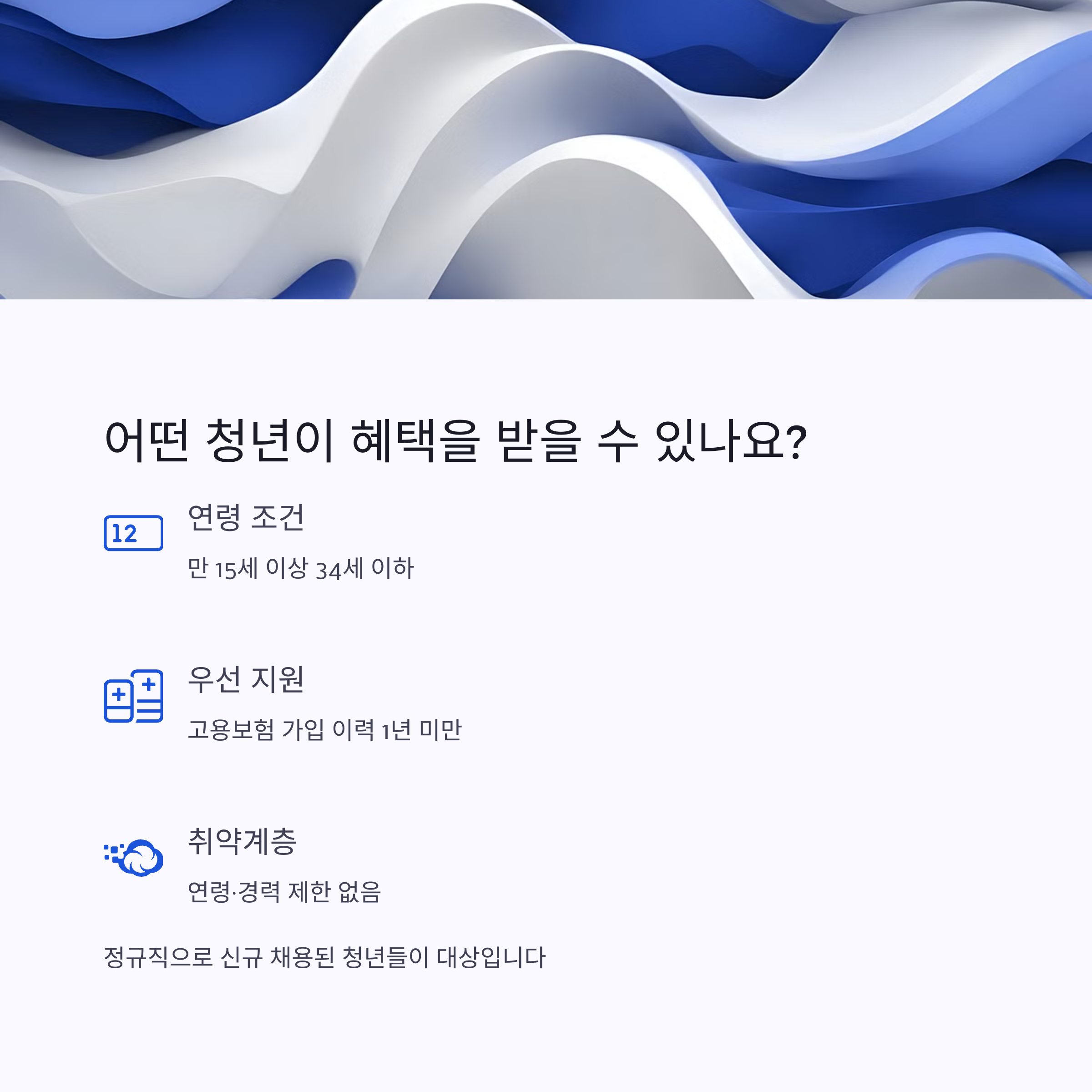 다만, 취업 취약계층(저소득층, 장애인 등)은 연령과 경력에 관계없이 지원 가능하니 참고하세요! 😊