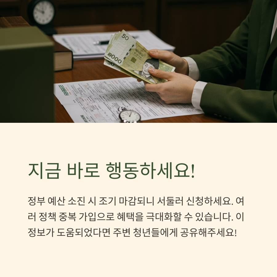 A: 각 정책마다 신청 기간이 다르고, 정부 예산 소진 시 조기 마감될 수 있어요. 관심 있는 정책이 있다면 최대한 빨리 신청하는 것이 좋아요. 특히 청년희망적금 같은 경우 매년 신청 기간이 짧아 놓치지 않도록 주의하세요.