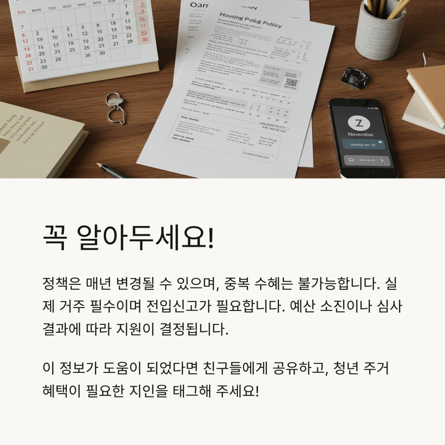 청년주거정책은 매년 조건이나 지원 내용이 변경될 수 있어요. 항상 최신 정보를 확인하는 것이 중요합니다.