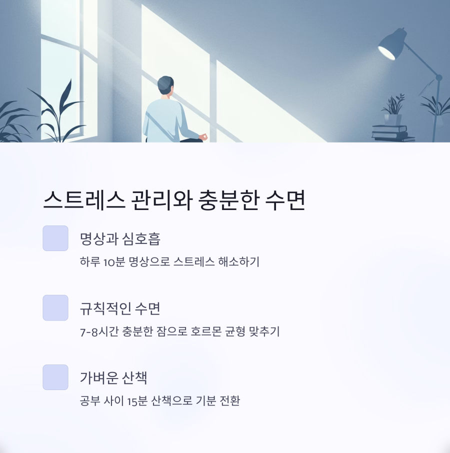| 시간 관리 | 영양 균형 | 스트레스 관리 |