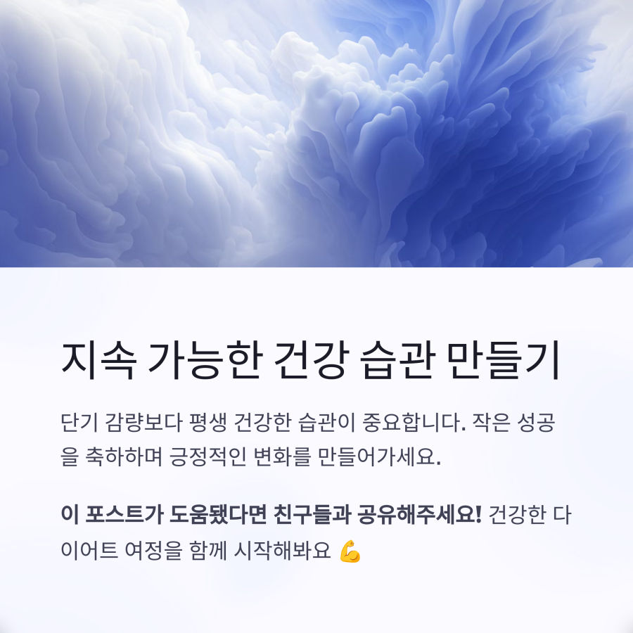 단기간에 급격한 체중 감량보다는 장기적으로 유지할 수 있는 건강한 습관을 형성하는 것이 중요합니다. 💪