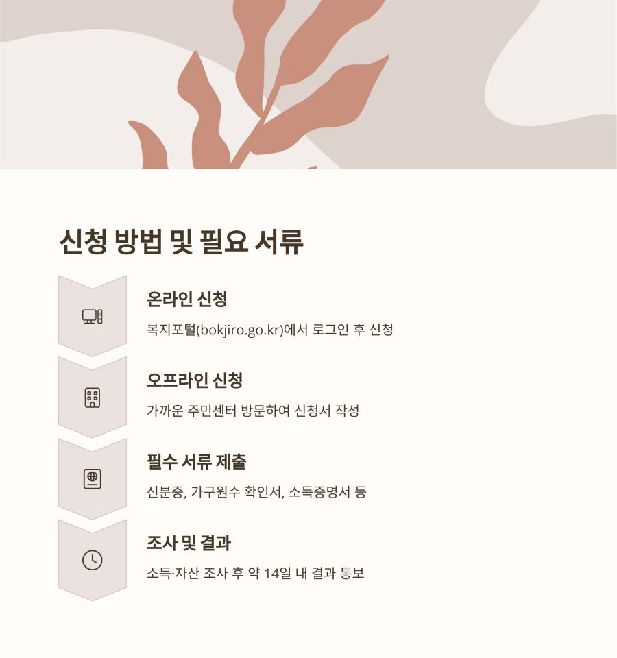 | 온라인 신청 | 복지로 웹사이트 또는 애플리케이션 |
