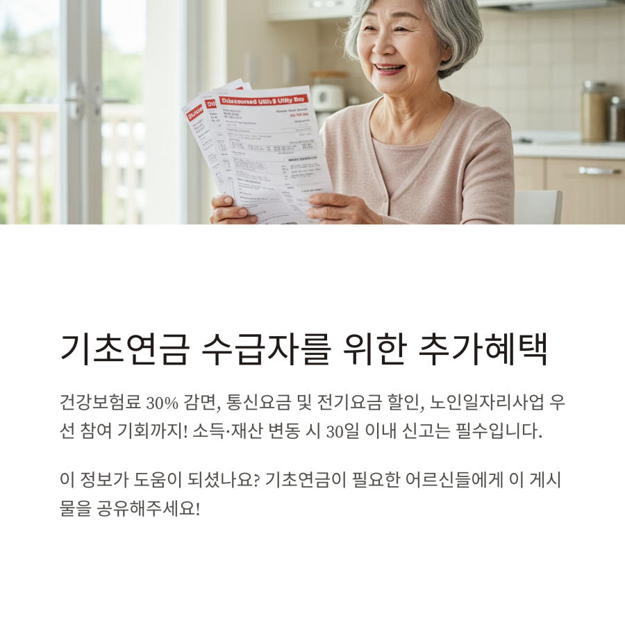 기초연금 수급자는 다양한 추가 혜택을 받을 수 있어요.