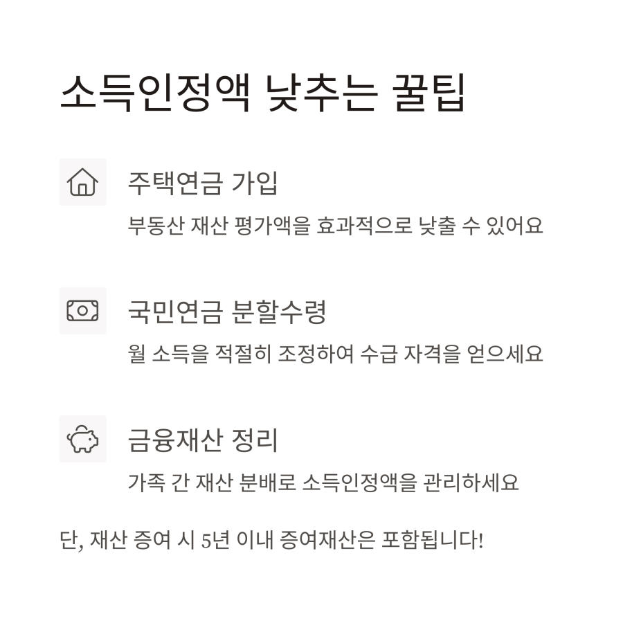 예를 들어, 주택연금에 가입하면 주택은 재산에서 제외되고 연금수령액만 소득으로 잡히기 때문에 유리할 수 있어요.